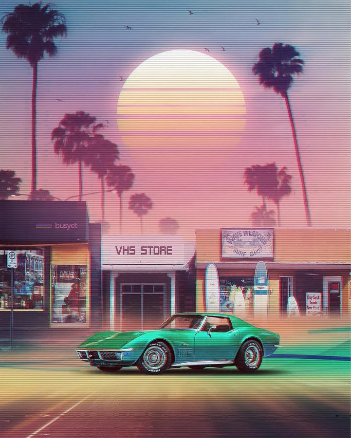 90tals Estetisk Vintagebil Solnedgång Wallpapers -