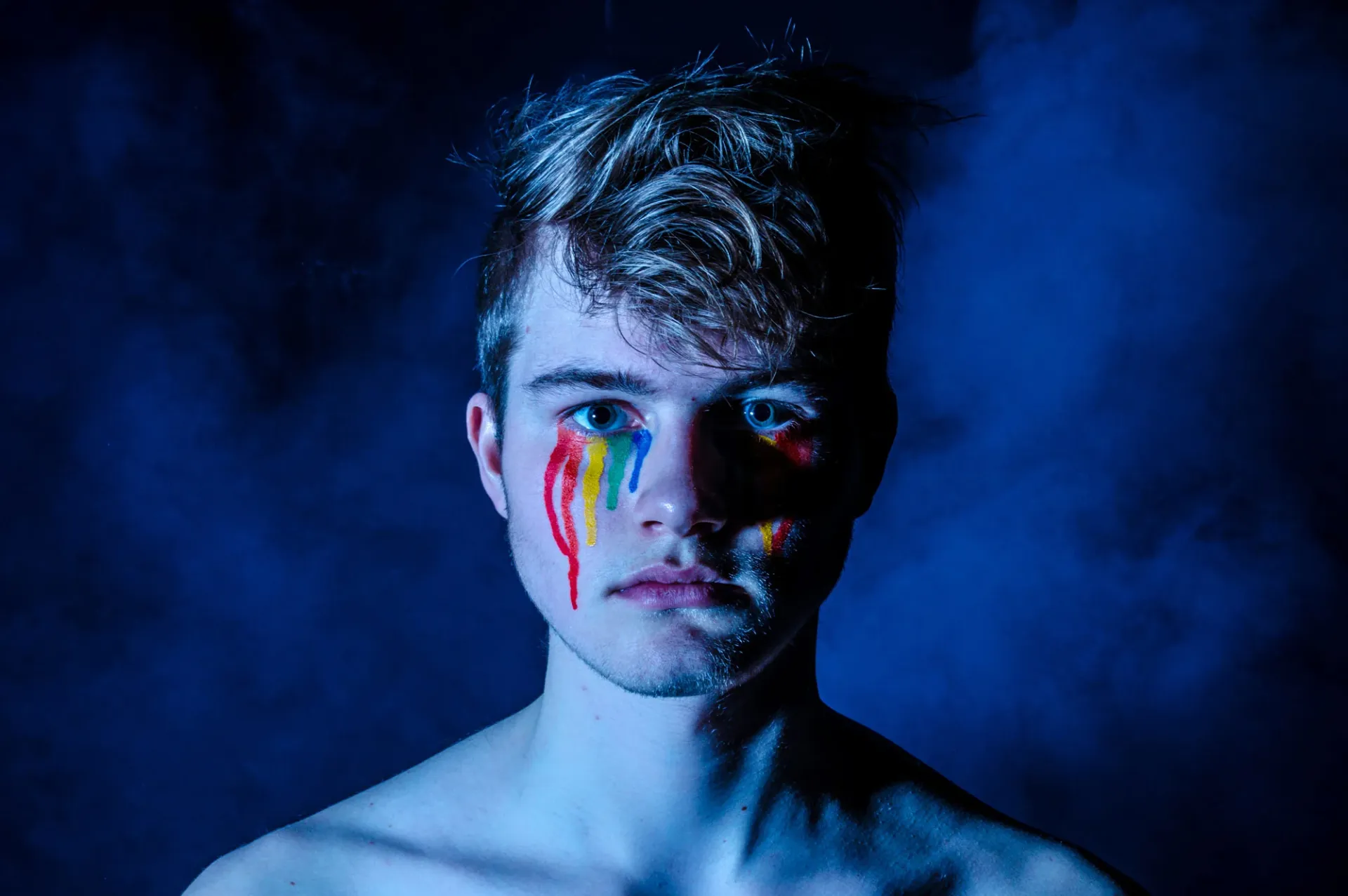 Regnbågsfärgadansiktsmålning För Stolt Pojk Pride Som Bakgrundsbild Till Datorn Eller Mobilen. -