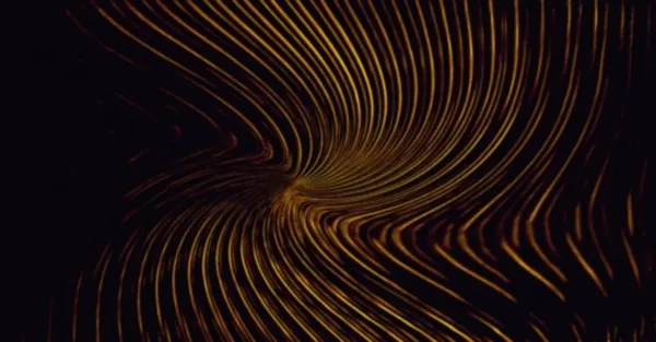 Envirvlande Orange Vätska Med Guldiga Virvlar -