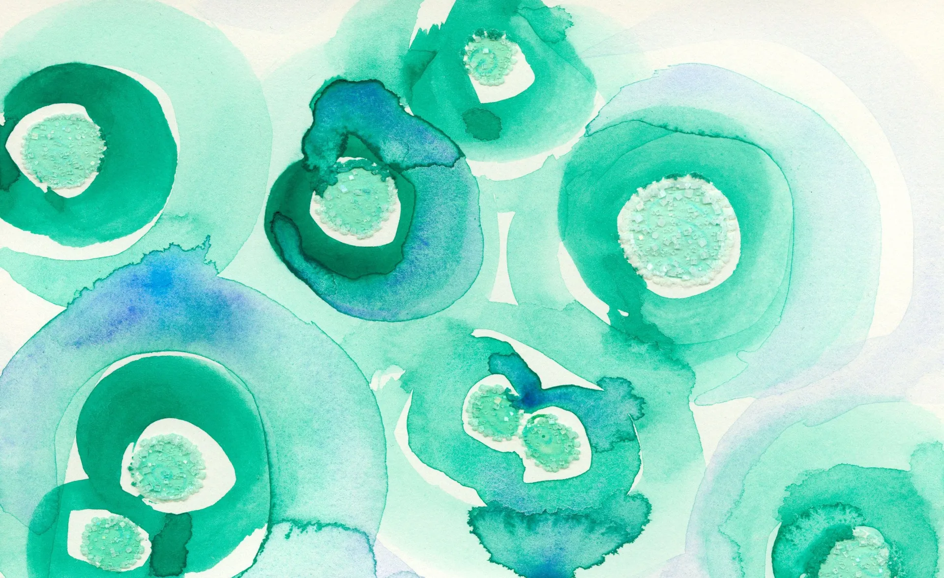 Närbildpå En Blå Vätska Med Många Små Celler. -