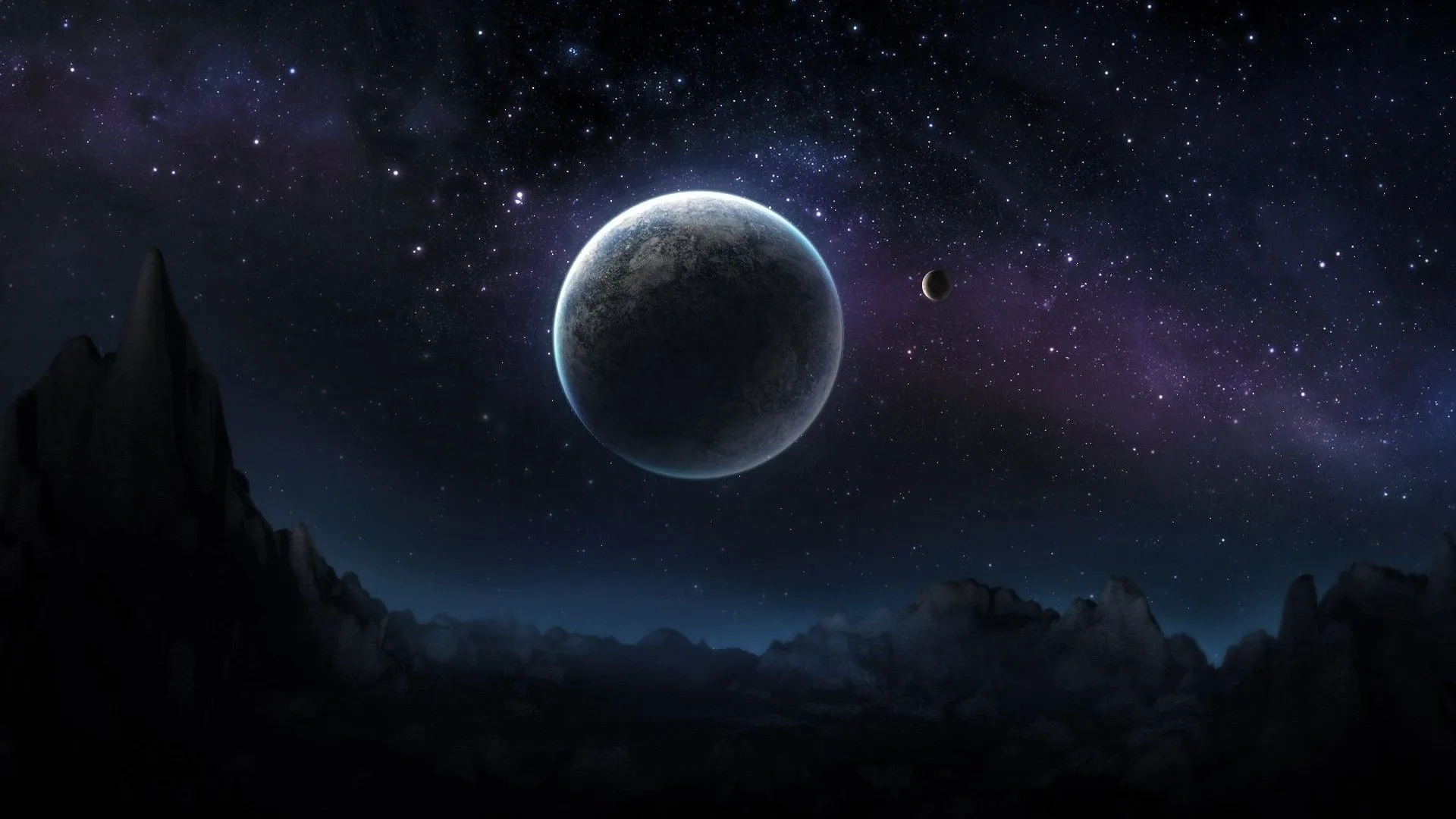 Enplanet I Rymden Med Stjärnor Och Berg Wallpapers -