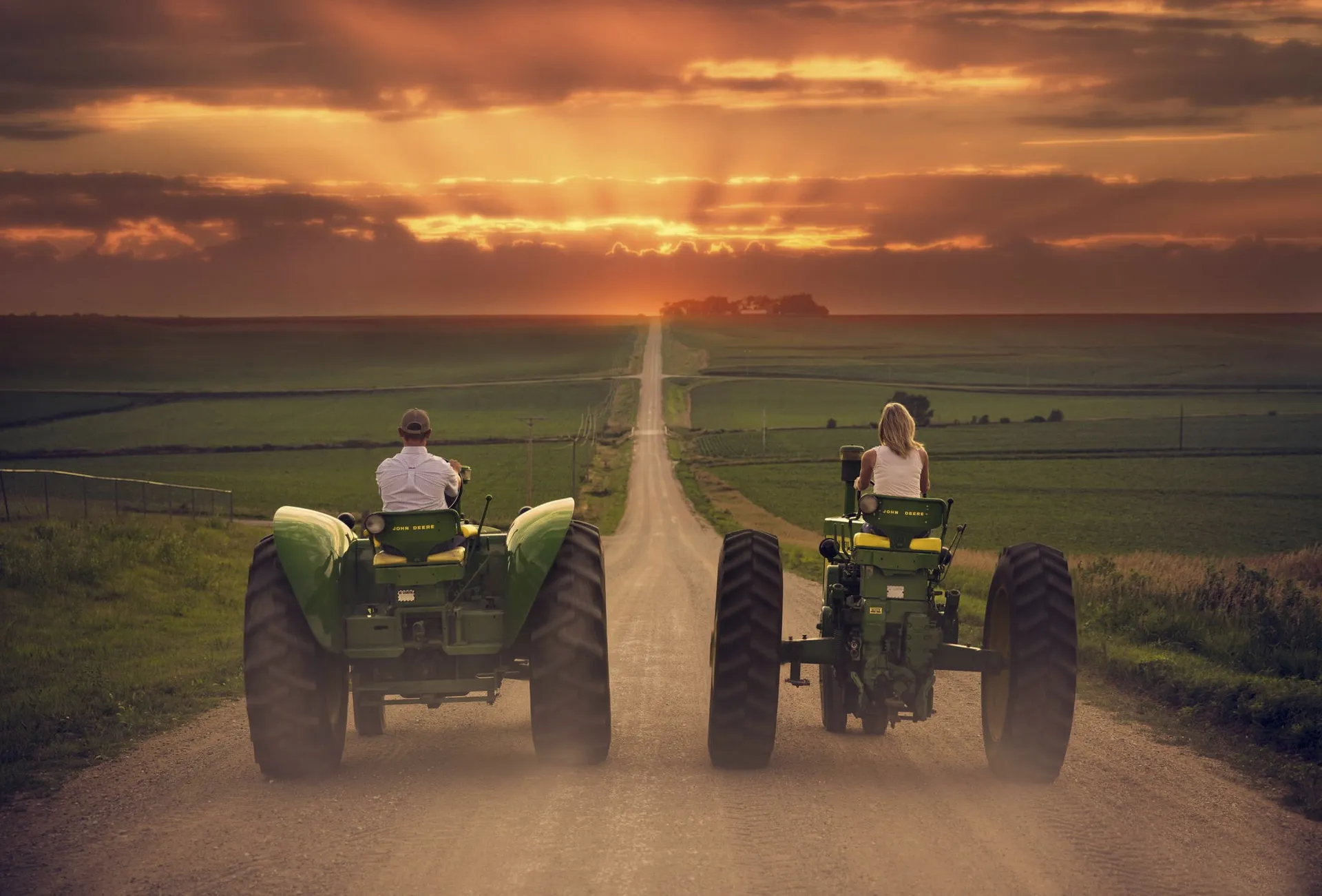 Johndeere Traktor Under Solnedgången Wallpapers -
