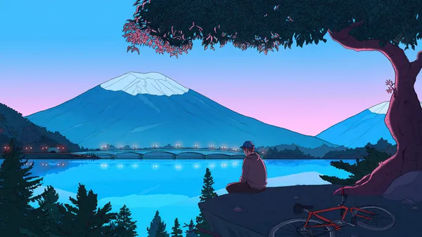 Ensam Man Bergsutsikt Avslappningsbild. -