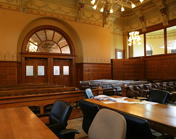 Högvinkel Tagen Av Amerikanskt Rättssalsbakgrund. -