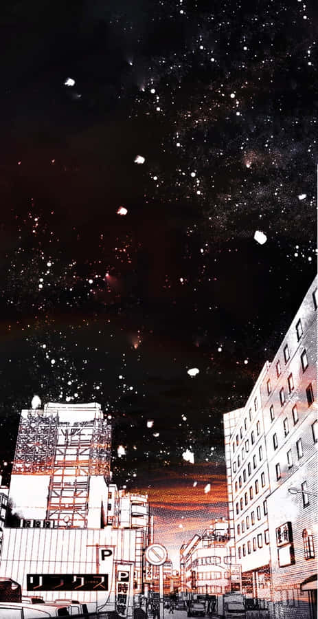 Svartnatthimlen Estetisk Anime-bakgrund. -