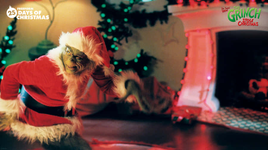 "grinchclaus Holiday Zoom Background" Would Be Translated As "grinch Claus Högtidsbakgrund För Zoom" In Swedish In The Context Of Computer Or Mobile Wallpaper. -