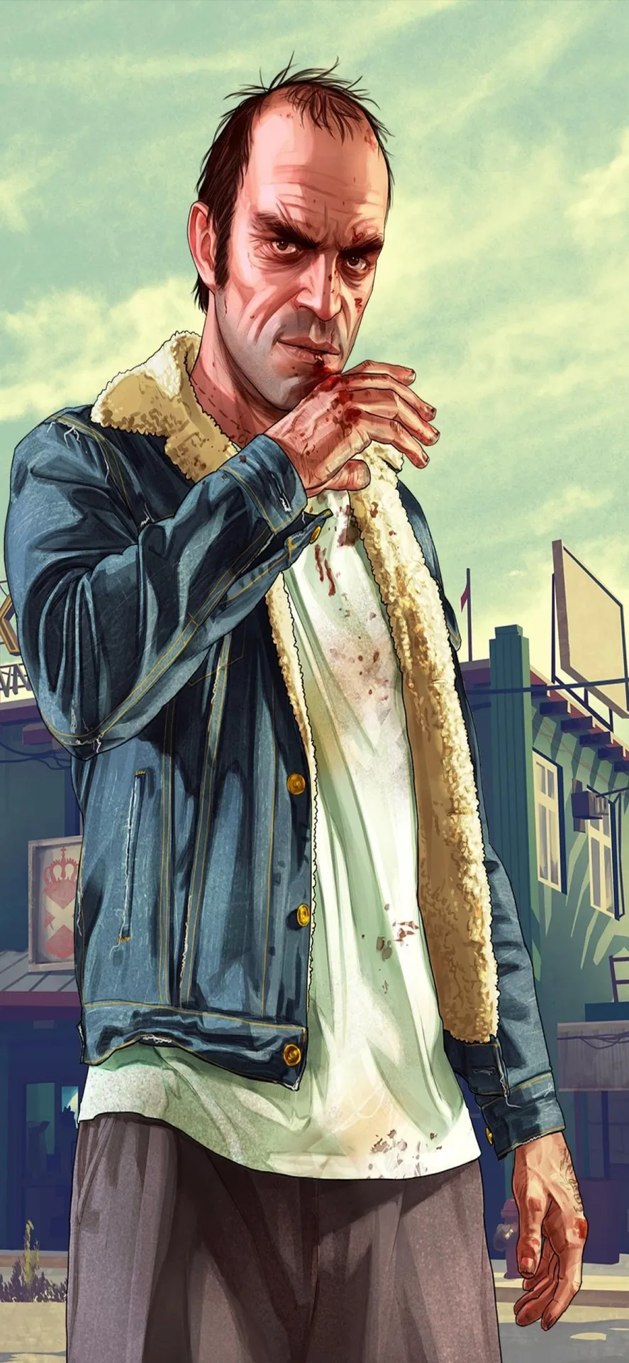 Iphonex Bakgrundsbild På Grand Theft Auto V Med Trevor I Denim -
