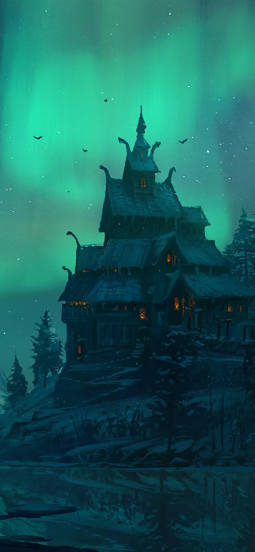 Iphonexs Assassin's Creed Valhalla Aurora Borealis Bakgrundsbild. -