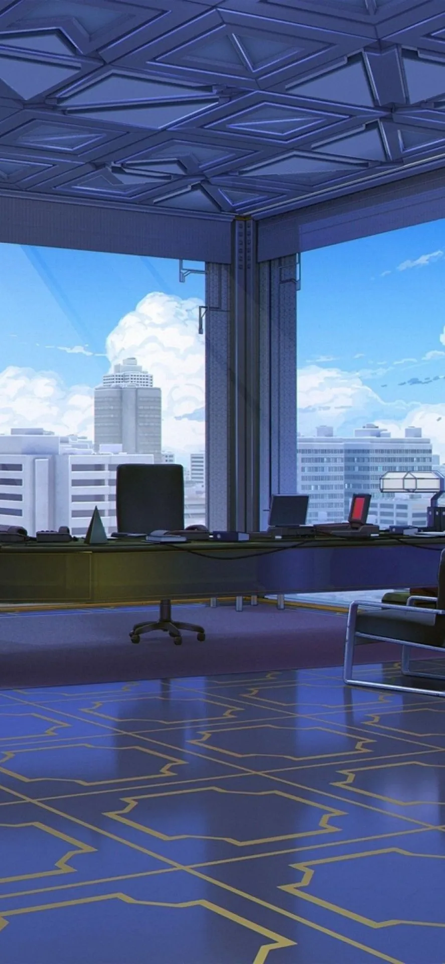 Iphonexs Anime Bakgrund Med Kontorsflicka. -