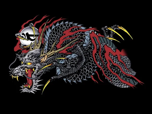 Mörkkonst, Japansk Drake Datorskärm. Wallpapers -