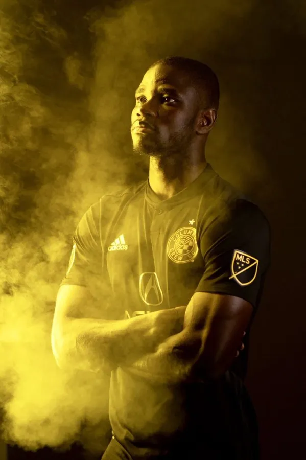 Ghananskefotbollsspelaren Jonathan Mensah Columbus Crew Digital Poster. Wallpapers -