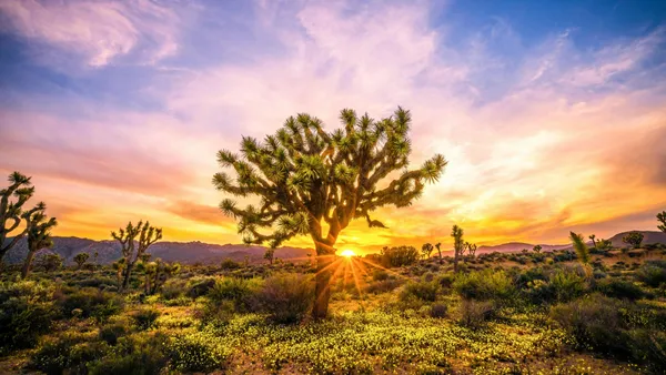 Solnedgångsbilderfrån Joshua Tree Som Bakgrundsbilder Till Dator Eller Mobil. -