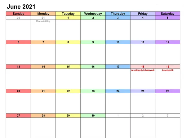 Juni2021 Kalender Med Röda Och Blåa Datum. Wallpapers -