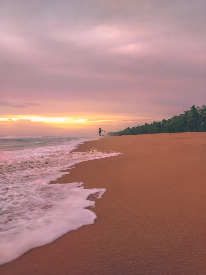 • Enstrand Med Vågor Och En Solnedgång Wallpaper
