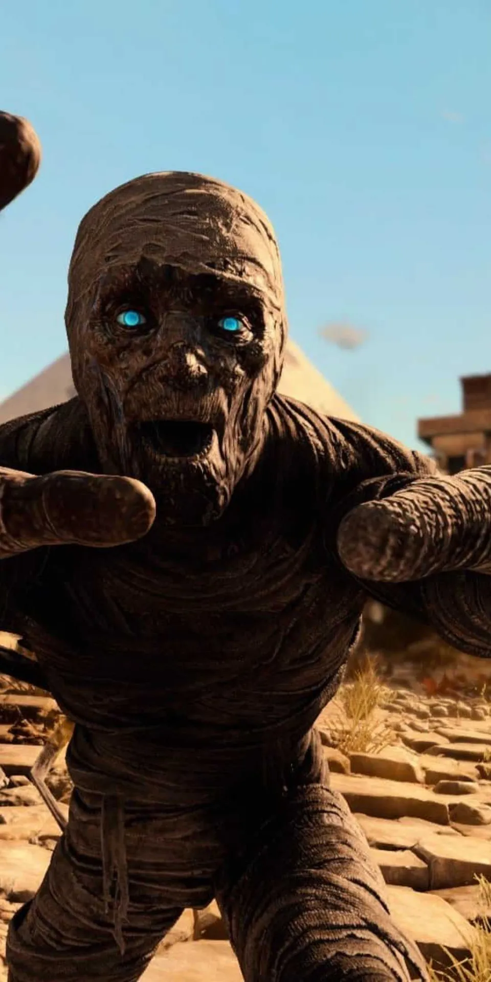 Enmumie Med Blåa Ögon Står I Öknen. -