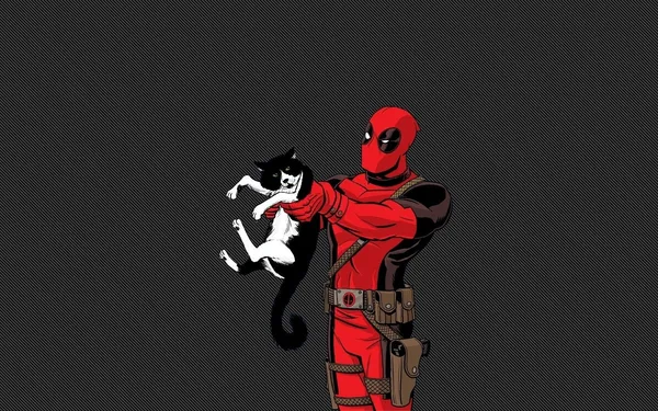 Roligadeadpool Som Håller En Katt Wallpapers -