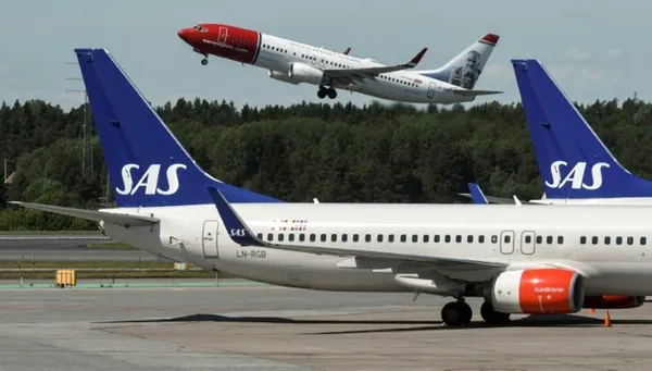 Skandinaviskaflygbolaget Sas På Flygplatsens Start- Och Landningsbana. Wallpapers -