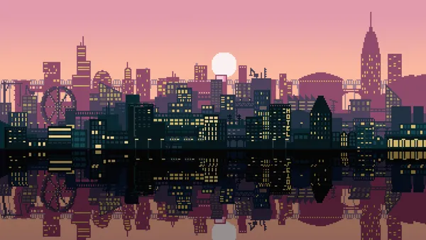 Enspektakulär Pixelkonst Illustration Av En Livlig Stadssiluett. Wallpapers -