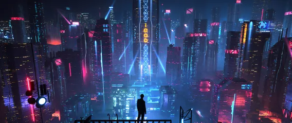 Enstad Med En Radiotorn Och En Stad Med En Måne. -