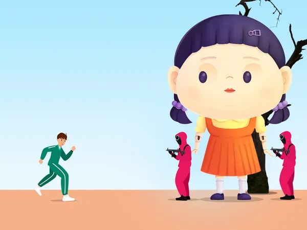 "squidgame Red Light Green Light" Bakgrund Vector Art För Dator Eller Mobil. -