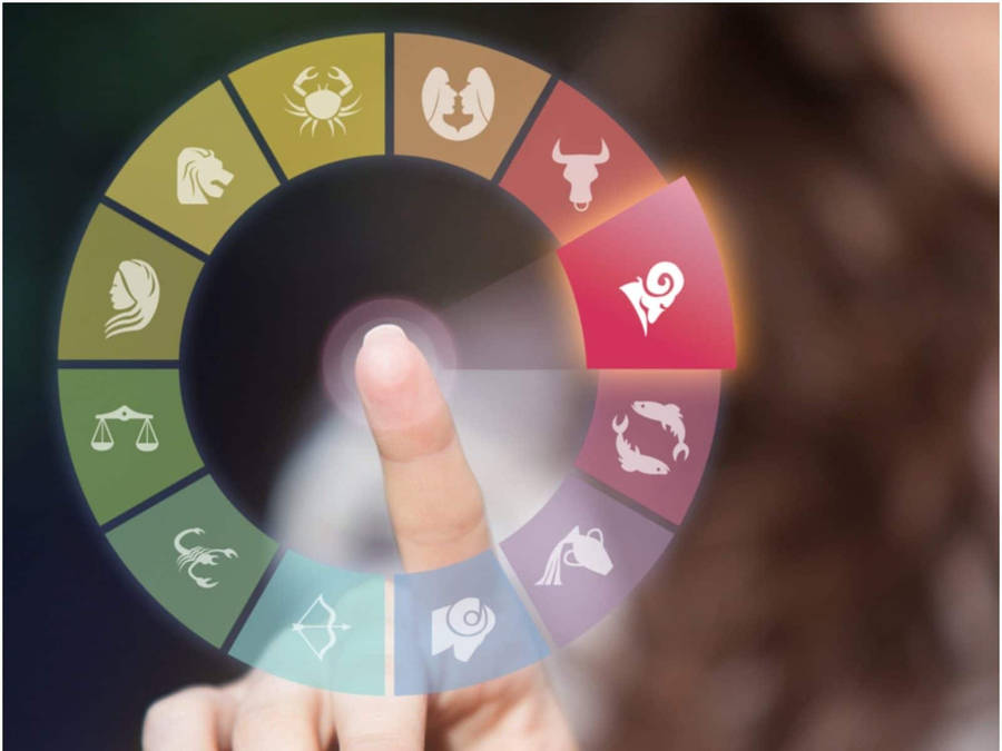 Astrologiskt Hjul Med Stjärntecken Och Symboler På En Bakgrund Med Vind. Wallpapers -