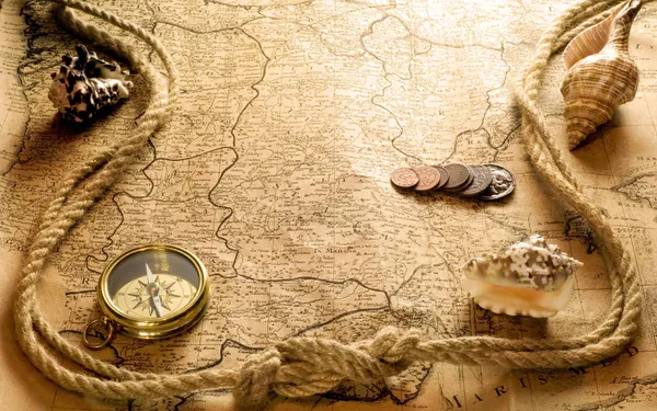Kompassoch Karta Vintage Estetisk Laptop-skrivbordsbakgrund. Wallpapers -