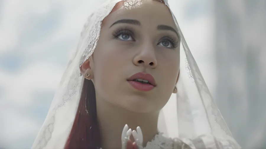 Bhad Bhabie Framträder I En Dramatisk Musikvideoscen Med En Slöja, Vilket Visar Hennes Unika Stil Och Konstnärliga Uttryck.