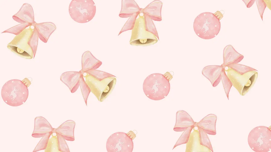 Eleganta Rosa Rosetter Och Festliga Klockor Skapar Ett Charmigt Julmönster, Perfekt För Julinslagning, Dekorationer Och Säsongsdesigner.